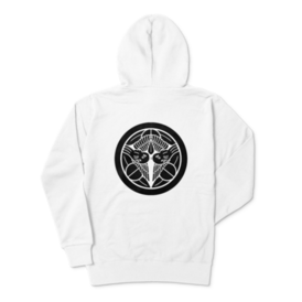 上杉謙信 家紋 竹に飛び雀 パーカー 白に黒