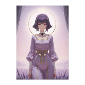 ポスター - B2この商品はpixivFACTORYで作られた商品です。サンプル画像は完成イメージのため、実物と異なる場合があります。 柔らかな光輪とラベンダーカラーを基調にした幻想的なポートレート作品です。 静かな表情と繊細な色彩が印象的で、 アート性と落ち着きを兼ね備えたインテリア向けポスターです。