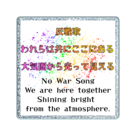 ラメアクリルキーホルダー - 50 × 50mm反戦歌われらは共にここにある大気圏から光って見えるラメキーホルダーです。 英語で短歌を書くことで外国人差別や排外主義に反対し、連帯を示すグッズ。 ブチ上げラメラメキーホルダーとなっております! この商品はpixivFACTORYで作られた商品です。サンプル画像は完成イメージのため、実物と異なります。