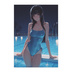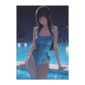 静かなナイトプールの透明感|ブルーワンピース水着美少女ポスター