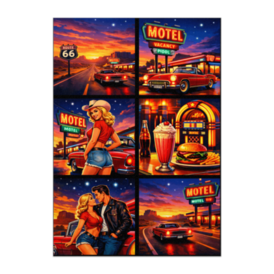Route66ナイトロード ― ネオンモーテルポップアートポスター