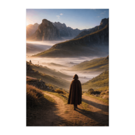 幻想の谷を歩く旅人ポスター(ファンタジー風風景アート)