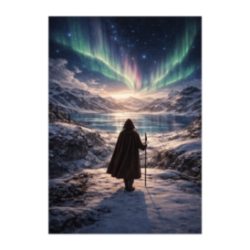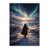 オーロラの雪原と旅人ポスター(幻想雪景色ファンタジーアート)