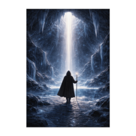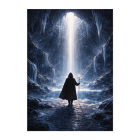 光柱に導かれる旅人 ― 氷の洞窟ファンタジーポスター