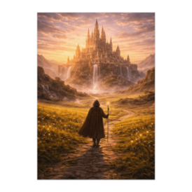 ポスター - B2この商品はpixivFACTORYで作られた商品です。サンプル画像は完成イメージのため、実物と異なる場合があります。 広大な草原の先にそびえる巨大な城塞と、それを目指す旅人を描いたファンタジー作品です。 壮大な建築美と柔らかな光の演出が、物語性とスケール感を感じさせる印象的な一枚です。 あります。