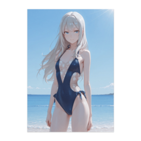 ポスター - B2この商品はpixivFACTORYで作られた商品です。サンプル画像は完成イメージのため、実物と異なる場合があります。 澄んだ空と海を背景にした、 落ち着いたネイビーカラーの水着が印象的なポスターです。 透明感ある夏の空気感を楽しめる、 インテリアにも合わせやすいアート作品です。