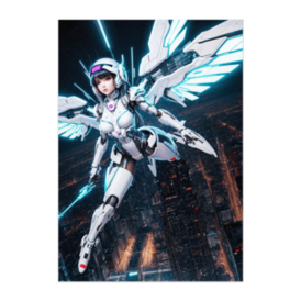 ポスター - B2この商品はpixivFACTORYで作られた商品です。サンプル画像は完成イメージのため、実物と異なる場合があります。 夜の超高層都市を背に、光の翼を広げる近未来機兵。 ホワイトアーマーとネオンの対比が印象的な、ダイナミックな空中戦の一瞬を描いたポスター作品です。 躍動感と未来感を同時に楽しめる一枚。