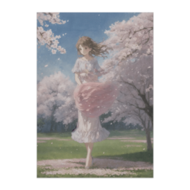 桜風に包まれて – 春色ワンピースの透明感アートポスター