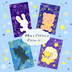お星さまとどうぶつさんをデジタルで描いた絵を印刷したポストカード(絵はがき)です。 どうぶつさんはうさぎ、くま、くろねこ、ひつじをそれぞれ描きました。 夜に輝くのはどんなお星さま? ---------------------------------------- 1 踊る夜のきらきら星。 →弾ける星の中で踊るうさぎさん。 空も心もきらきら🐇 2 どきどき集める彼方星。 →くまさんが集めた星はどんなのだろう? どきどき期待を膨らませながら🧸 3 希望つかむ、ねがい星。 →暗い中くろねこさんが見つけた大きなひかり。 大丈夫、怖くないよ。 諦めなければ夢と願いはそばにあるから🐈⬛ 4 ときめき夢見る祈り星。 →大きな星に乗ったひつじさん。 目を閉じればあたたかな気持ちと 夢に揺れながら🐑 ------------------------------------------ 夜は暗いからこそ、星は明るく優しく照らします。 お星さまとどうぶつさんに願いを込めて描きました。 ◯商品内容 サイズ→100×148 mm 材質→紙 ◯発送について ・あんしんBOOTHパック(匿名発送)対応 ・発送時期:7日以内に発送予定