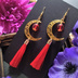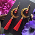 【和風】三日月とタッセルのピアス(イヤリング)(赤)【チャイナ】【中華風】【推し活】【推し色】
