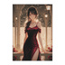 ワインレッドドレスの美女 ― 夜のローズガーデン
