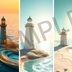 静寂の6枚セット:朝の光から夕暮れまで、表情豊かな海の情景。