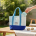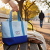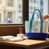 「スカイブルーの雪の結晶ミニトート|ふんわりグラデーション」スカイブルー×ホワイト