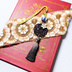 明石国行モチーフのブックマーカーです。 髪にさしたり、帯にさしたり、本に挟んだりと多用途にお使いいただけます。 モチーフ部分だけで11-12cmと長めですので、タッセルを外してのご注文も可能です。 タッセルなしでのご購入はメッセージにて受け付けしておりますのでよろしくお願いします。 水引、廃盤のスワロフスキー、ホタルガラス、手染めのタッセル等を使用しております。 水引は曼荼羅結びになっており、コーティング剤を塗布してあります。 多少形崩れや水濡れに強くはなりますが、防水効果が高い訳ではありませんので雨などにはお気をつけください。 こちらは簡易梱包になります。 プレゼント梱包をご希望の場合はプレゼント梱包を作品と同時にご購入頂きますようよろしくお願いします。