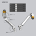 2か所の関節があるロボットアームです。先端アタッチメント5種類が選択可能です。