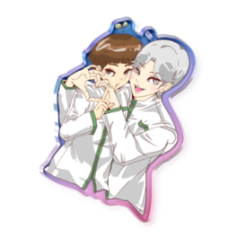 オーロラアクリルキーホルダー - 70 × 70mmこの商品はpixivFACTORYで作られた商品です。サンプル画像は完成イメージのため、実物と異なる場合があります。 cpとしてのキタニトがアクキーという媒体でイチャつきを見せつけてくれます。キラキラしてて可愛いです!