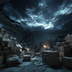 幻想的な空と雲の背景素材【高画質10枚】Vol.99〈住宅廃墟編/夜間〉
