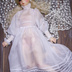 触れてはいけないものほど、美しい。 透けるほどに薄い白のドレスは、 無垢の象徴でありながら、どこか不穏な静けさを纏っています。 やわらかな薄手の生地が光を含むたびに、 存在が曖昧になるような質感に仕上げました。 繊細なレースを贅沢にあしらい、 首元から裾まで、静かに連なる装飾が視線を誘います。 少女のような純潔と、 決して踏み込んではいけない“禁域”の気配。 ただ可愛いだけでは終わらない、 物語を内包した一着です。 ・ドレス本体 【仕様】 ・後ろ開き ・繊細な生地を使用しているため、お取り扱いにご注意ください ・色移り防止のため、長時間の着用や濃色との接触はお控えください。 【ご注意】 ・ハンドメイド作品のため、個体差があります ・強い力を加えると破損の原因になります