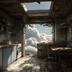 幻想的な空と雲の背景素材【高画質10枚】Vol.122〈住宅廃墟・日中編〉