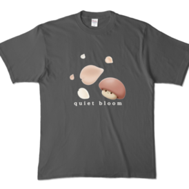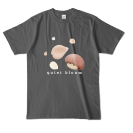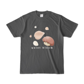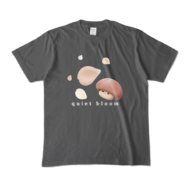 カラーTシャツ - XL - チャコール (濃色)深みのあるチャコールに5枚の花びらが静かに馴染む“quiet bloom”デザイン。 Soft neutral charcoal brings a calm and minimal mood. 淡い花びらときのこの優しい色が自然に浮かび、 quiet moments をそっとまとえる落ち着いた一枚です。 普段使いにも合わせやすい、やわらかな印象のTシャツ。 写真の色味は、光の当たり方や画面環境により実物と少し異なる場合があります。