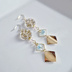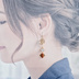送料無料*メタルプレートとガラスビーズが揺れるスクエアフープがお洒落なピアス/イヤリング(ゴールド)