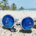砂浜のきらめきを宿す、夏のシルバーカフスシアンブルー シルバー金具
