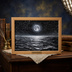 油絵 原画『月光の旋律』月 風景画 癒やし インテリア アート 額装込