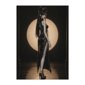 ポスター - B2この商品はpixivFACTORYで作られた商品です。サンプル画像は完成イメージのため、実物と異なる場合があります。 静かに振り返る瞬間を切り取った、印象的な機械美少女のポートレート。 黒のチャイナドレスが身体のラインに沿って美しく流れ、動きの中に優雅さと緊張感を生み出しています。 背後の柔らかな光がシルエットを引き立て、視線を引き寄せるドラマ性のある構図に仕上がっています。 見る人に物語を想像させる、静と動が融合した一枚です。