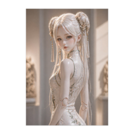 ポスター - B2この商品はpixivFACTORYで作られた商品です。サンプル画像は完成イメージのため、実物と異なる場合があります。 振り返る瞬間の美しさを切り取った、白チャイナドールの上品なポスターです。 肩越しに見つめる視線と、やわらかく光を受ける髪とドレスが、優雅で洗練された雰囲気を演出します。 静けさの中にわずかな感情が宿るような表現が、印象的な一枚に仕上がっています。 空間に気品と存在感を与える、アート性の高い作品です。