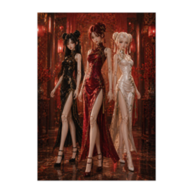 紅白黒の調和 ― 三体のチャイナドールドレス