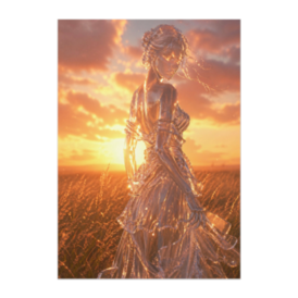 ポスター - B2この商品はpixivFACTORYで作られた商品です。サンプル画像は完成イメージのため、実物と異なる場合があります。 夕焼けに包まれた草原に佇む、透明なガラスの存在。 逆光に照らされた輪郭と、風に揺れる空気が、 静かな余韻と感情を生み出します。 振り返る仕草とやわらかな光が、 一瞬の美しさを切り取ったような印象を与える一枚。 心に残る、余韻重視のアートポスターです。