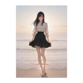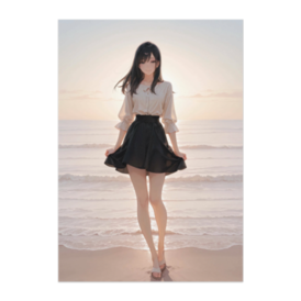 ポスター - B2この商品はpixivFACTORYで作られた商品です。サンプル画像は完成イメージのため、実物と異なる場合があります。 夕暮れの海辺に佇む、静かで落ち着いた雰囲気の女性。 やわらかな夕日の光と穏やかな波が、心を落ち着かせる空気感を演出します。 シンプルながらも印象に残る、美しいバランスの一枚です。 癒しや落ち着きを求める空間に最適なポスターです。