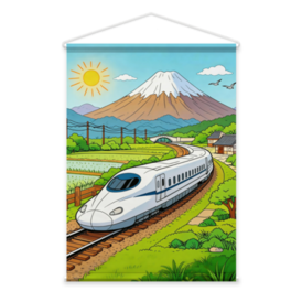 新幹線と富士山:黄金色の旅路  (tapestry)