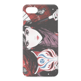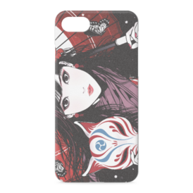 iPhoneケース - iPhone 7 / 8 / SE(第2・第3世代) - 正面印刷のみ正面女性と狐面のクールでスタイリッシュなデザインです。 この商品はpixivFACTORYで作られた商品です。サンプル画像は完成イメージのため、実物と異なる場合があります。