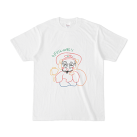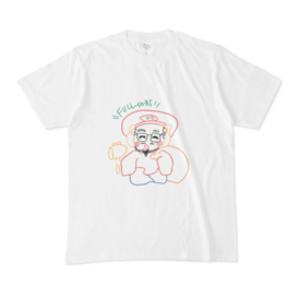 Tシャツ - XLこの商品はpixivFACTORYで作られた商品です。サンプル画像は完成イメージのため、実物と異なる場合があります。 フルそうびで全部コミコミのひとのTシャツです。黒もありますがおじさんの色が違います